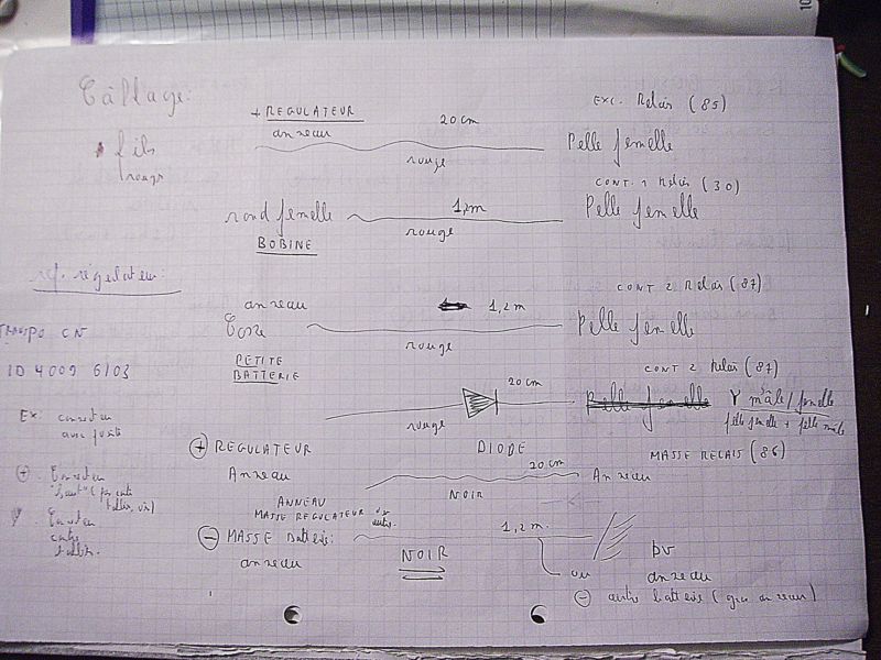 pour plus de facilité, le + contact est pris sur le + du régulateur, les masses sur le couvercle de boîte de vitesse