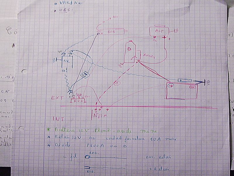 le montage ne pose pas de difficultés. Il faut trouver un endroit pour le relais : dans mon cas, sur le tablier au dessus de la tirette du frein à main. Veiller à débrancher la batterie principale pendant les travaux, et à brancher la batterie auxiliaire en dernier lieu, lorsqu'on est certain de ne pas avoir fait d'erreurs.